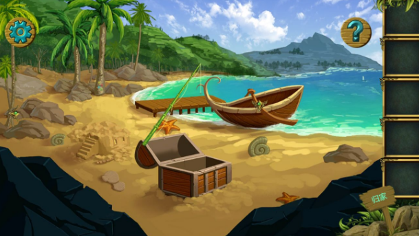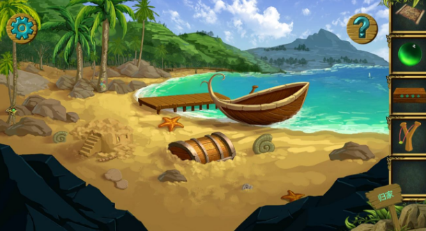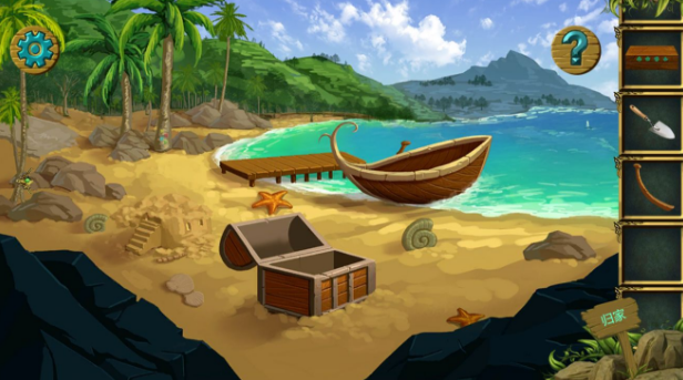 拿到地图后下坡,收集沙滩上的绿色珠子(就地上最绿的那个),沙滩城堡里的盒子,船上的弹弓