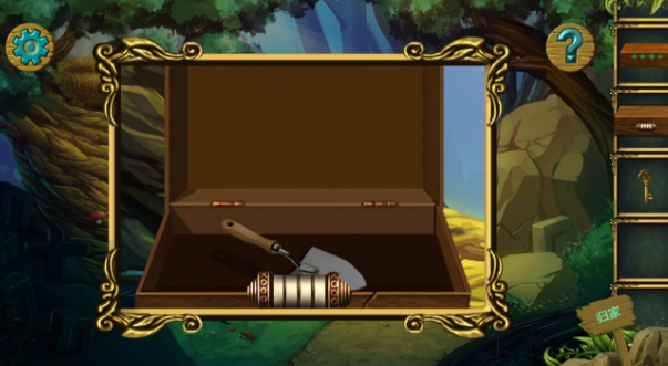 用密码打开之前从树上掉下来的盒子,里面是一把铲子