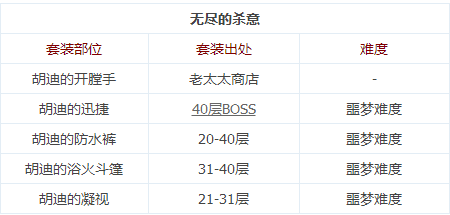 贪婪洞窟想要爬到更深层,不穿点好装备肯定是不行的,套装有各自的组合效果,而且贪婪洞窟里套装众多,各个部位的出处还不尽相同,下面为大家总结了贪婪洞窟套装出处大全,希望对大家有用。