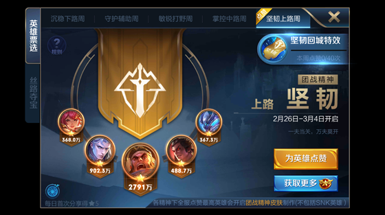 以上就是王者荣耀坚韧上路周投票给谁好,坚韧上路周投票英雄推荐,请大家继续关注。