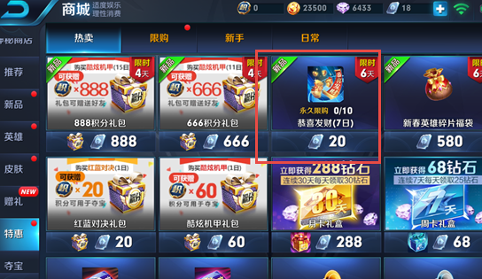商城-特惠中可以购买限定7日恭喜发财回城特效,并没有永久的。