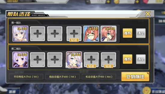 二队打精锐和boss,一队打杂鱼,全程单纵就是干,后排可带老板,一队战列可换老板。