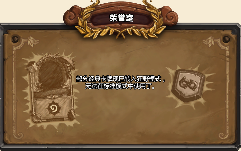 为了保持《炉石传说》给玩家们的新鲜感,经典系列中的某些卡牌今后将仅限在狂野模式中使用。这些卡牌将会进入荣誉室。今年,以下卡牌将会进入荣誉室: