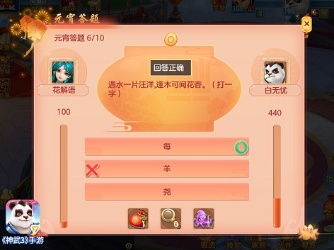欢庆闹元宵,喜乐猜灯谜。作为开年第一个热闹的传统节日,《神武3》手游为元宵节量身打造了众多极富节日特色的活动玩法,其中精彩纷呈的灯谜大会最受关注。活动期间,各位少侠随机两两匹配进入答题界面,以十道灯谜为一轮,连续答题获得活动积分,最后活动积分最高者获胜。