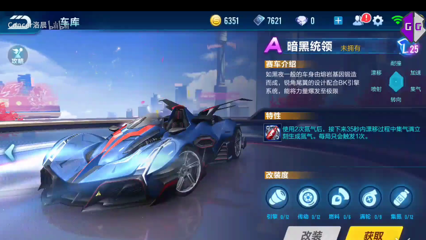 这辆赛车是非常有特点的一辆A车,据说特性是非常的强,外观霸气,有点像一位暗黑骑士。如黑夜一般的车身由熔岩基因锻造而成,锐角尾翼设计配合BK引擎系统,能将力量爆发至极限。