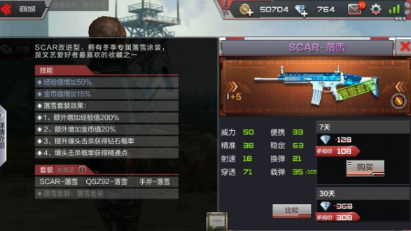 以下是落雪的属性,看完有没有觉得提升爆头+钻石几率升高这个属性很棒?还不快入手?
