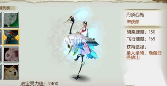 丹顶西施是游戏中新增单人坐骑,是一直白鹤,比之间的丹顶鹤更加漂亮。目前丹顶西施在体验服中上线,隐藏任务暂时还没开放。
