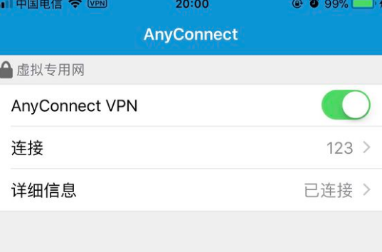 回主界面拨开AnyConnect开关,第一次连接时可能出现警告,点“更改设置”