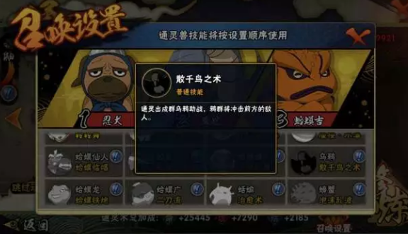 通灵兽搭配:作为一个主要还是靠跑酷打架的忍者,推荐带乌鸦,蛤蟆仙人,贝壳。这三个通灵最大的共同特点就是,拥有时间较长的干扰能力,可以为井野提供更多与敌方周旋的空间。