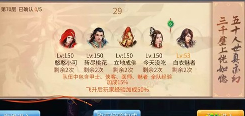 队伍中只需队长一人消耗卷轴,使用卷轴者有经验加成。使用卷轴后,选择是否消耗银两,消耗很少的银两即可获得100%经验加成,消耗银两与层数正相关。