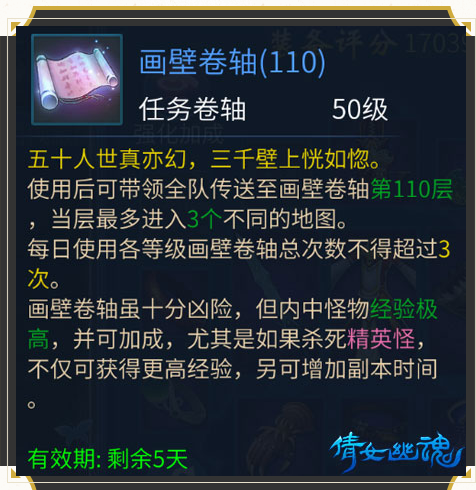 进入方式:使用不同层数的卷轴可进入对应画壁层数,每人每天限进入三次画壁卷轴副本
