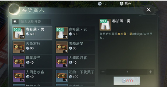 天机点目前可以兑换春衫装(裤衩)、限时称号和永久称号