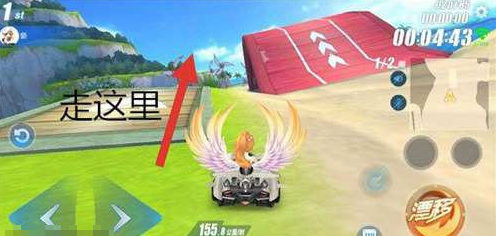 开局,车手会遇到一个红色的拱桥,拱桥坡度太高,会使赛车失去大量速度,因此走拱桥左边。拱桥左边的木板路才是最佳道路(如下图),赛车从此处通过将会进行一次飞跃,可以使用两次小喷,是开局的最佳道路。而在第二圈的时候,如果经过这里是有一个氮气的话就可以直接走拱桥,毕竟使用氮气飞跃得更远。
