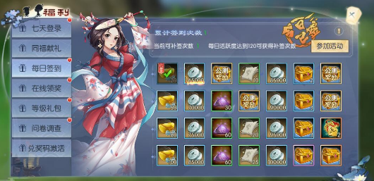 每天参与签到,都能获得物品或者金钱奖励,是积攒钱财必不可少的手段。