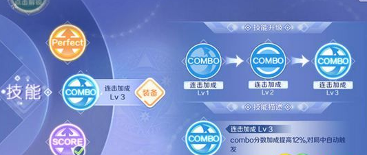 2、连击加成:这个技能可以提高歌曲音符COMBO得分,比较适合可以达成歌曲ALL COMBO评价的玩家。