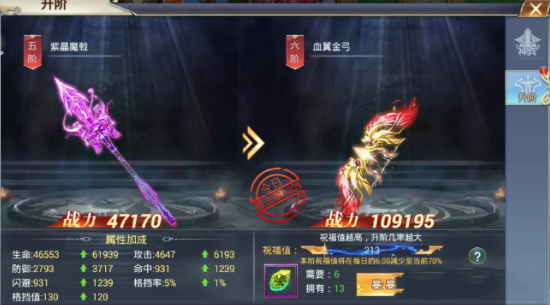 神兵5升6需要多少进阶石?答:需要95-120个。