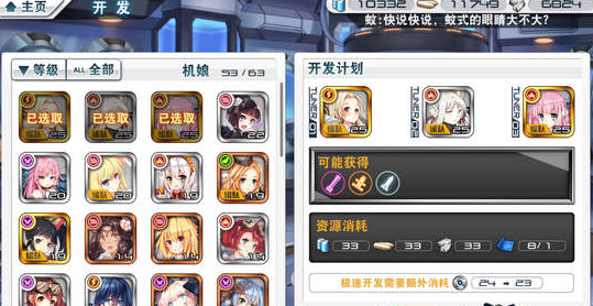不过貌似也不是固定的,还和机娘的星级有关?总之呢,大家只要在开发的时候注意下可能获得的是哪些武器,然后根据自己的需要选择机娘进行开发即可。
