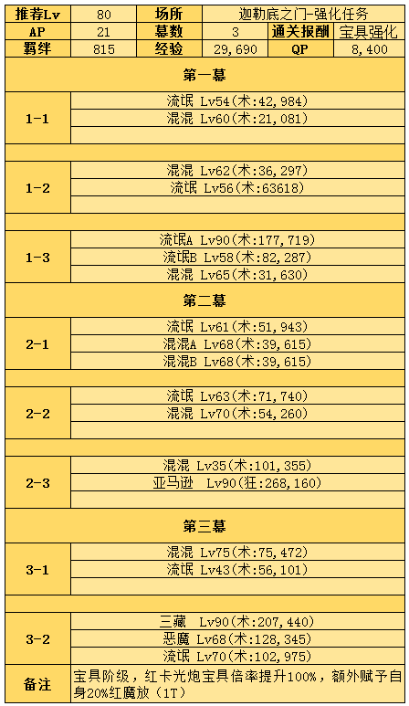 开放要求和通关奖励与往常一样,开放要求为满破,无需羁绊,但是真名隐藏的从者需要真名揭示后才能开放强化本,通关奖励1个圣晶石+技能/宝具强化