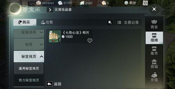 第二阶段:当你和我一样,就缺五岳和毒经这两蓝的时候,注意了,首先盯着你要的那个一直刷新,直到有人摆了点进去买,手速不够买不到也没事,这时候你不要再点别的地方了,直接x掉珍宝阁,以后就直通过点珍宝阁来刷新。当有秘籍的时候能直接点购买少点了一次。