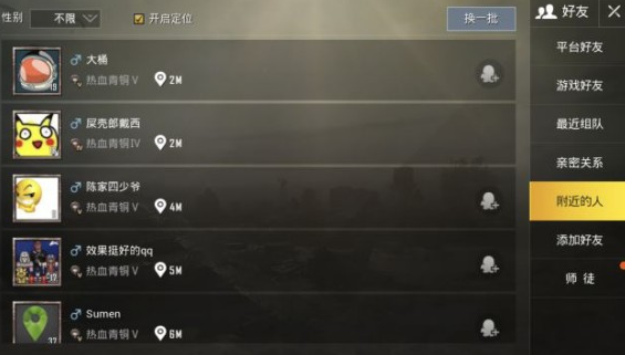 绝地求生刺激战场附近的人在哪看,绝地求生刺激战场使用附近的人功能可以快速的加好友,还能通过头像查看战绩资料,寻找鸡友,那么绝地求生刺激战场附近的人在哪看,下面带来附近的人功能介绍,希望对大家有所帮助。