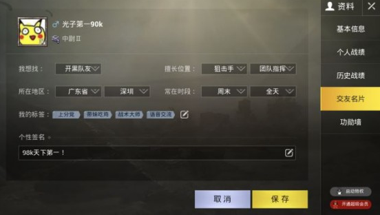 绝地求生刺激战场交友名片怎么设置,绝地求生刺激战场交友名片可以自由设置头像,字体,标签等等,可以让玩家更方便快捷寻找鸡友,展示自我,那么绝地求生刺激战场交友名片怎么设置,下面带来交友名片设置方法教程,希望对大家有所帮助。