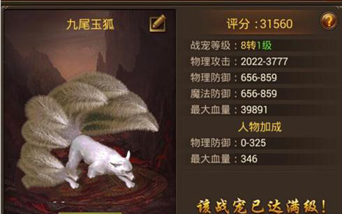 在没有后面更好的暴击攻击战宠的情况下,对抗法师和道士时,九尾狐是一个不错的选择。