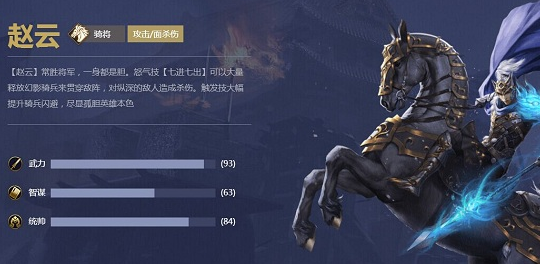 赵云:又名赵子龙,赵子龙擅长的就是使用骑兵作战,必杀技叫做七进七出,可以在骑兵中造成突袭,对敌人造成贯穿的伤害,当然这个武将效果还是非常好的,擅长切后排的武将。
