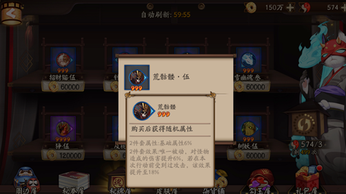 3、荒骷髅:对怪物造成的伤害提升6%,若在本次行动前收到过攻击,该效果提升至18%。