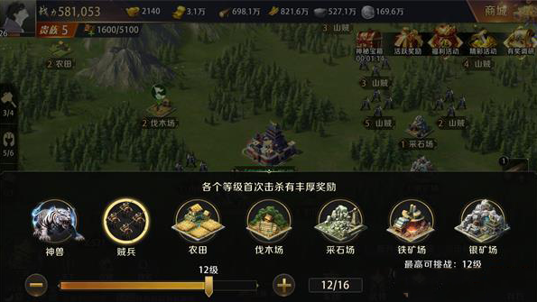 挑战乱贼时都会给出推荐战力,如果自己的战力略低于乱贼,可以通过兵种之间的相互克制击败乱贼;但是如果战力相差太多,就不要浪费自己行动力,合理的挑战乱贼让自己获得的资源和道具最大化。