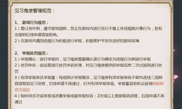 阴阳师新职业见习鬼使是官方最新招募游戏玩家维护游戏环境的职业,不少的玩家朋友都非常的喜欢,想知道阴阳师新职业见习鬼使到底工作职能是什么,有什么具体的作用,下面西西就为大家分享阴阳师新职业见习鬼使申请方法,希望大家能够喜欢。