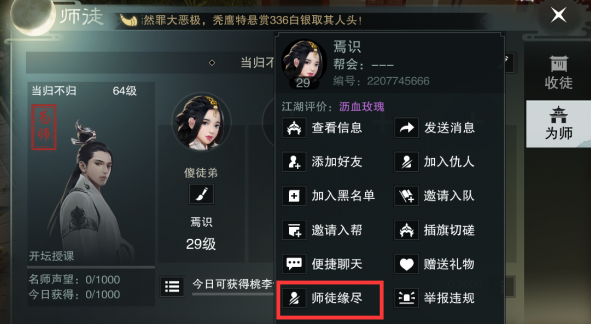 楚留香手游出师任务怎么做,楚留香手游完成出师任务之后可以释放一个弟子栏位,调整了初始任务等级,玩家也可以选择不做出师任务保留关系,那么楚留香手游出师任务怎么做,下面带来出师任务完成攻略,希望对大家有所帮助。