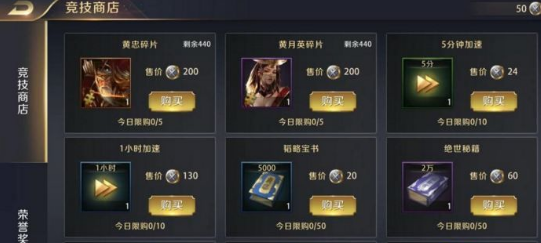排名高了之后,竞技币多,可以换黄忠碎片,培养价值高。其他竞技币同样也是来换加速道具。