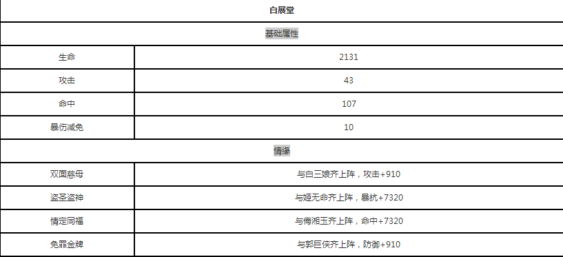 白展堂的属性方面就高于不少侠影,再搭配上他的情缘属性,与其中的任何一人上阵加成都非常高,西西小编强烈建议入手哦!