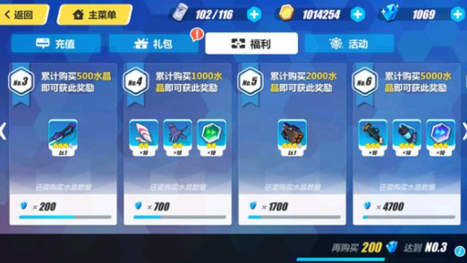 2)参与50次定量补给必定可获得奖励列表中的所有物品,包括小型水晶礼盒×15、吼咪宝藏×10、吼美宝藏×25(使用小型水晶礼盒可以获得20水晶,也就是说本期定量补给中可以获得300水晶,以及100万金币)。