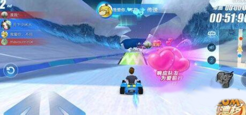 学会聚集氮气后,默契度蹭蹭蹭地往上涨,大招自然是接连不断。而车手所处位置的不同大招的特点也有所不同,为了避免发生失误,掌握大招的使用很有必要。当车手是两人队伍靠前的一方时,触发大招会获得一个爱心氮气的超级加速。这个加速比普通氮气更加强劲持续时间更加长,在弯道上释放千万要慎重,因为一不小心就会掌控不了赛车方向,引起失控或是撞墙。最佳释放时机是在长而宽的直道上,这样才能全面发挥爱心氮气的加速效果。