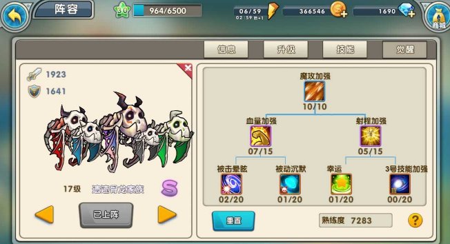 定位:虽然骨龙是攻卡,但是技能更趋向肉和辅助,攻击加成只有觉醒技能第一栏有魔攻加强,所以骨龙的作用就是大招辅助,自身抗伤害,靠被动眩晕沉默幸运扰乱敌方。中期过渡卡首选,获取容易。