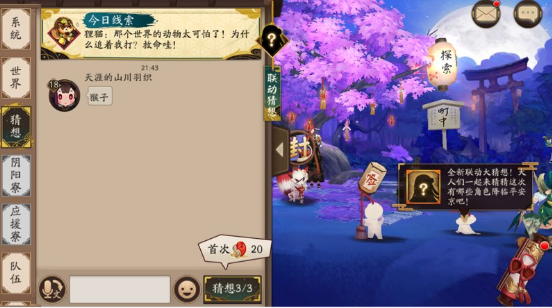 阴阳师很多玩家在联动大猜想中得到的线索是那个世界的动物太可怕了为什么追着我打救命哇,这是狸猫说的,很多玩家看到线索很是迷茫,那阴阳师那个世界的动物太可怕了为什么追着我打救命哇答案是什么,西西小编来为大家介绍。