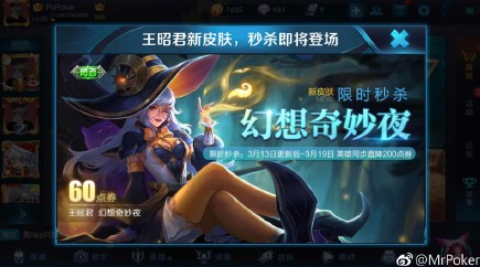 按照活动页面的介绍,这款皮肤名为幻想奇妙夜,售价六十点券,是除了阿轲的十点券皮肤最便宜的一款出售皮肤,限定的出售时间为13号也就是下周二,持续一周的时间。
