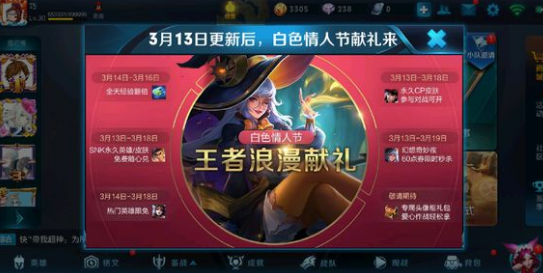 以上就是王者荣耀3月13日更新内容汇总,2018白色情人节活动介绍,请大家继续关注。