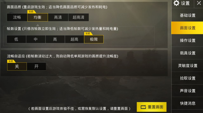 超高帧数设置方法:先将画质调整成均衡/流畅画质,关闭游戏,杀掉进程,重启有次生效后,即可选择超高帧数。