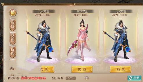 1.五次挑战用完可以花费一定的绑金重置所有挑战次数。