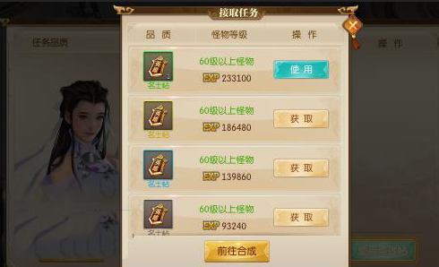 ②在英雄帖界面,点击右下方使用英雄帖的按钮。出现接取任务界面后,选择需要使用的英雄帖品种,点击使用接取任务