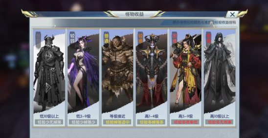 不知大家有没有注意到挂机界面的怪物说明:低于人物10级以上,经验少无掉落;低于人物3-9级以上,经验少掉落少;与人物等级,经验掉落适中;高于人物1-4级,经验多掉落多;高于人物5-9级以上,经验多掉落少;高于人物10级以上,经验多无效率。所以,你清楚为什么你杀怪的经验少,别人杀怪的经验多的原因在哪里了吗?