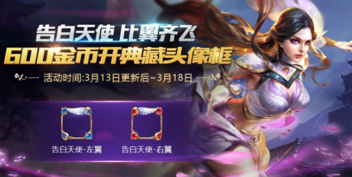 白色情人节,甜蜜告白!600金币开告白天使典藏头像框!还有金币、铭文碎片等你来拿!