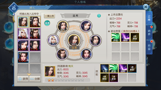 3、随从不强求SSR,尽量把战功和灵石花在培养和升星上。S随从提升一星大概能贡献200到800的战力。阵法随从需要七个,所以可以暂时培养S级的随从,待后期人品开出SSR时再分解随从,回收灵魂丹和经验丹。