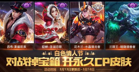 每日参与5v5匹配(不含人机)及排位、娱乐模式将掉落白色情人节宝箱(每日上限2个)