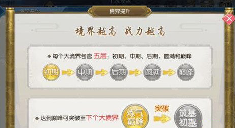 境界:境界越高,战力越高!每个大境界分为初期,中期,后期,圆满,巅峰五个阶段。大境界分为:炼气期,筑基期,结丹期,元婴期,化玄期,洞玄期,合体期,大乘期,人仙期,地仙期,天仙期,玄仙期,仙君期,仙王期,仙皇期,仙帝期,人尊期,地尊期,天尊期,神尊期20个大境界。突破大境界大幅度提升全属性和战力,可以获得更多的奖励,更高级的装备。