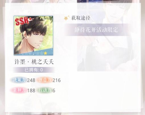 恋与制作人静待花开活动中,玩家坚持浇水施肥一定的时间可以免费拿到羁绊卡许墨桃之夭夭,很多玩家对这个羁绊卡不了解,恋与制作人许墨桃之夭夭值得培养吗,西西小编为大家带来许墨桃之夭夭属性一览。