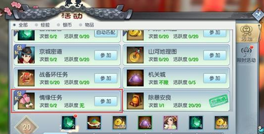 江湖携手任逍遥,结伴同行在今朝!客官每日可与有缘人(异性)组队,在七侠镇月老处接取情缘任务,全部任务完成后可获得奖励。