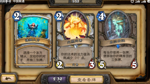 弃1张牌:相当于2费抽2牌还换1张牌,小赚,建议使用(除非有什么如兽群呼唤之类非常关键的牌不想弃),达成难度较高。